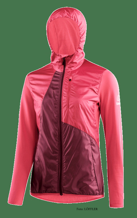 Midlayer aus weichem3D Gestrick mit Merinowolle Waffelstruktur an der Innenseite, aufgedoppelt mit Windshell (Brust, Kapuze), wärmeisolierend, leicht, elastisch, atmungsaktiv, schnell trocknend. Angeschnittene Kapuze, Fullzip, elastischer Arm- und Bundabschluss, Zip-Brusttasche.