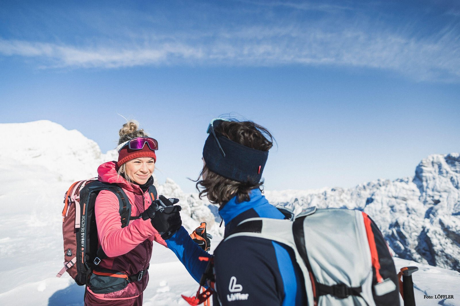 SKitourenkleidung von LÖFFLER – „Neue Wege gehen. Mit dieser Idee entwickeln wir leichte und aktive Skitourenbekleidung für ambitionierte Tourengeher mit hohem Anspruch an Qualität, Funktion und Style. Mit funktionellen Skitouren-Outfits unterstützen wir jeden Skitourengeher, seine eigenen Herausforderungen zu bestreiten. Dabei bleiben wir verantwortungsbewusst und produzieren die gesamte Kollektion in Österreich und Europa.“