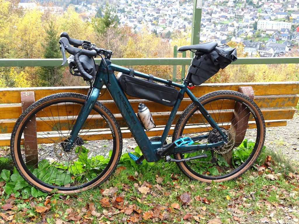 Wir haben Bikepacking Taschen von ROVATIV ausführlich getestet; an verschiedenen Rädern, im Alltag auf Tagestouren, sportlich und gemütlich, auf mehrtägige Touren, bei Sonne, bei Regen, bei Schnee und tiefen Temperaturen. … und sie haben immer ihren Zweck erfüllt: Leicht am Bike zu befestigen, einfach zu befüllen, sie sitzen auch mit max. Füllung stabil, sind wasserdicht , ersetzen locker auch Schutzbleche und den Gepäckträger und machen z. B. aus dem etwas biederen e-Gravel Urbanbike ein rassiges Reise e-Gravelbike.