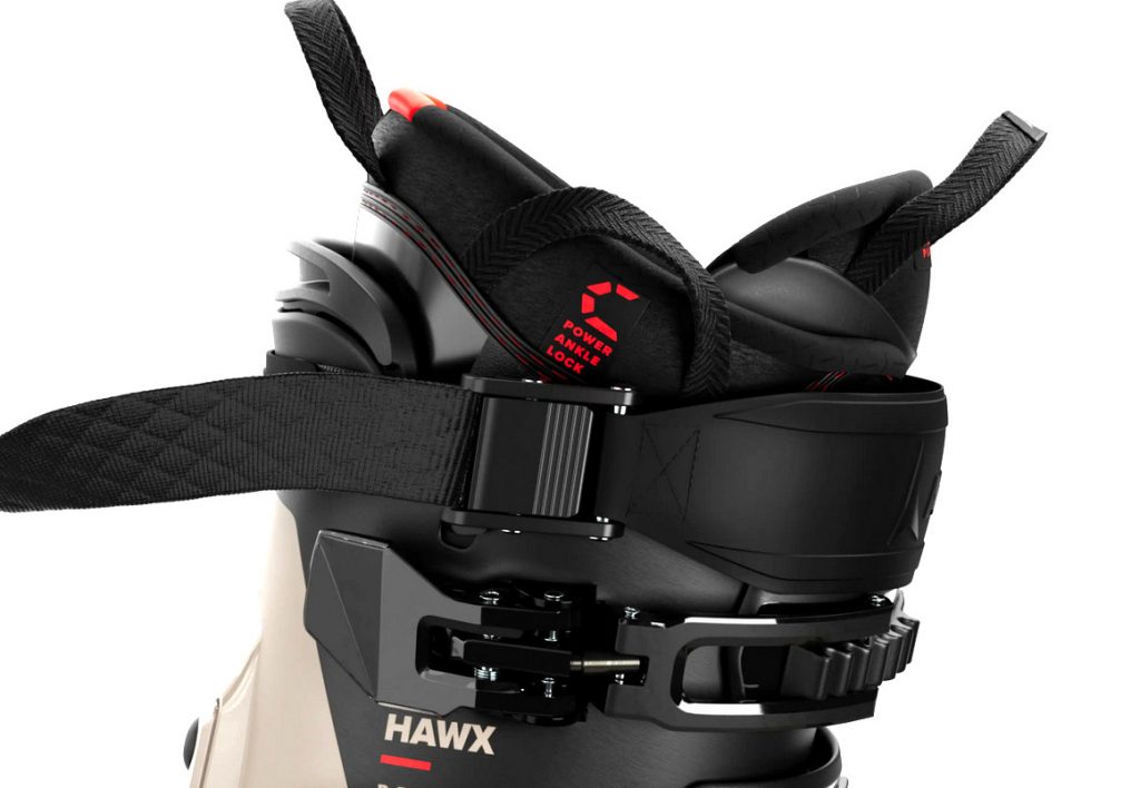 Damit es keine Probleme mit dem Schienbein gibt, kann man die Zunge ( per Klett ) am Innenschuh individuell auf unterschiedliche Fußform und Risthöhe einstellen. Die Ferse wird durch eine spezielle Konstruktion im Innenschuh – Power Ankle Lock – sicher in Position gehalten.