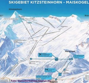 Bei aller Euphorie über diese neue Direktverbindung zum Gletscher bleibt natürlich weiterhin ein großer Wunsch: Eine Abfahrt vom Kitzsteinhorn bis hinunter ins Tal! Im ersten Moment nach Veröffentlichung des Seilbahnprojektes sahen wir uns schon auf einer Superabfahrt von über 3000 m Höhe bis auf 800 m runter schwingen; in der Presseerklärung zur Seilbahn Kaprun-Maiskogel-Kitzsteinhorn heißt es nämlich: „ Die neue Verbindung bietet zukünftig nicht nur einen Direkteinstieg vom Ortszentrum über den Familienberg Maiskogel in das Gletscherskigebiet Kitzsteinhorn, es wird erstmalig auch eine Abfahrt von 3.029 bis auf 768 Meter ins Tal geben“ . Aber 10 Minuten nach unserer naiven Anfrage „eine durchgehende Abfahrt??“kam per e-mail die nüchterne Antwort: „man kann am Kitzsteinhorn die Pisten bis Langwied 1.976 m nützen, dann die Bahn bis zum Maiskogel und dann wieder die Pisten bis zum Ortszentrum von Kaprun. Das Gelände zwischen Langwied und Maiskogel lässt eine Piste nicht zu.“ Aber als Entschädigung bietet die Seilbahnverbindung zwischen Langwied und Maiskogel dann doch auf jeden Fall ein gewaltiges Panorama.