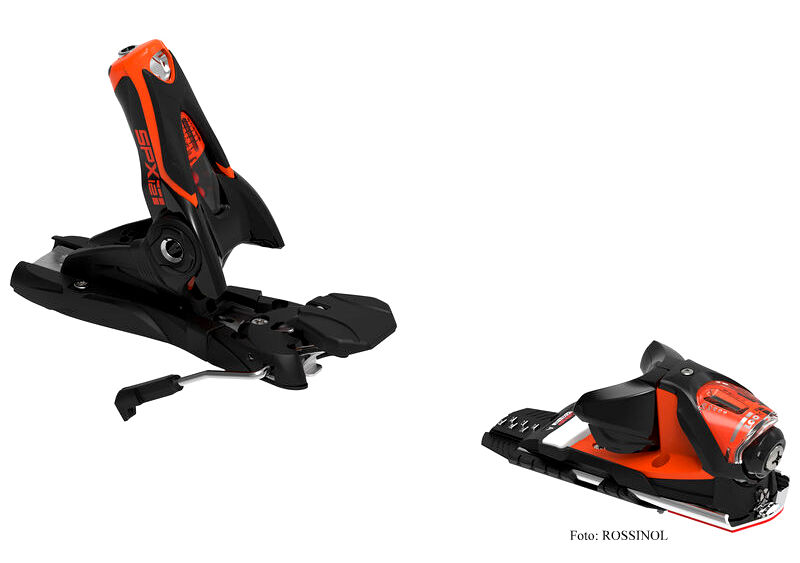 Die auf dem Testski montierte SPX 14 K GW B80 SCHWARZ HOT RED Bindung bietet im Fersenteil (konstruktionsbedingt durch den hochstehenden Kolben) einen sehr langen „Elastic Travel“ Weg für hohe Stoßdämpfung, um das Risiko von Fehlauslösungen zu minimieren; eine tolle Bindung.