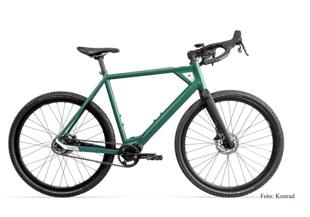 Neu bei den E – Gravels ist ganz aktuell der Einsatz von Getriebeschaltungen; Konrad bietet sein Urban Gravel mit der neuen 9-Gang EFFIGEAR Mimic Getriebe Schaltung + Riemenantrieb + Mahle X35 Motor mit 248 Wh Akku + Range Extender 208 Wh.