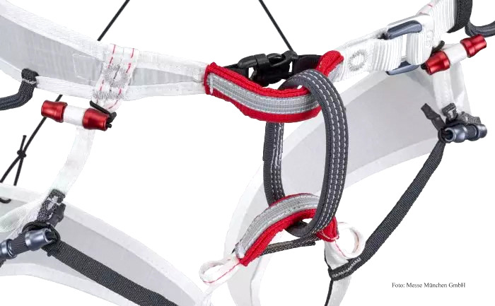Flexibel zu tragen, leicht zu verpacken – Der Gurt ist sehr einfach anzulegen, auch mit Ski oder Steigeisen an den Füßen. Er verfügt über innovative Verschlüsse, die eine vollständig verstellbare Passform, zugeschnitten auf die individuelle Körperform ermöglichen. Dies macht auch den Wechsel in der Einstellung möglich. An den Einbindepunkten sind zwei reflektierende Bänder angebracht, die Benutzer*innen beim Anseilen bei schlechten Lichtverhältnissen oder in der Dunkelheit unterstützen.