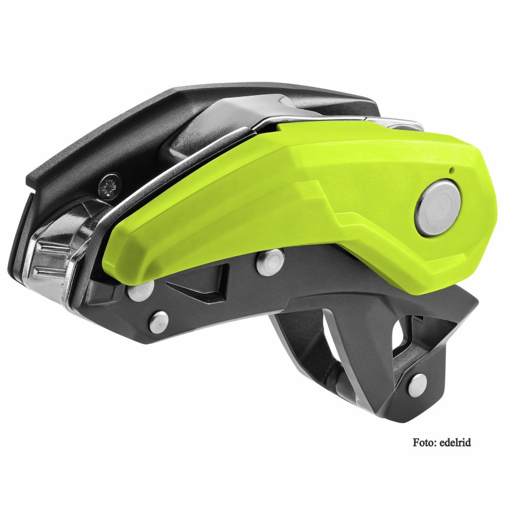 Mehr Sicherheit, einfache Handhabung und verbesserte Bremsseilkontrolle – das sind einige der wichtigsten Vorteile des neuen Edelrid-Sicherungsgerätes +niedrige, körpernahe Position beim Sichern.