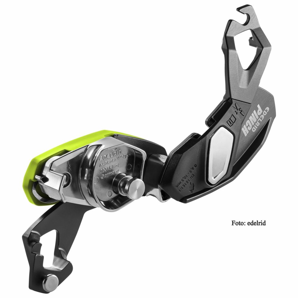 Durch sein nahezu symmetrisches Design kann das Pinch auch gleichermaßen von Links- und Rechtshänder*innen bedient werden. Außerdem ist das Gerät doppelt zertifiziert und kann für die Seilzugangstechnik und das Setzen von Routen verwendet werden. „Der Pinch ist einfach das vielseitigste Gerät, das es derzeit gibt und lässt sich effizienter handhaben als jedes andere“, fasst Philippe Westenberger die Vorteile der neuesten Sicherungsgeräte-Innovation von Edelrid zusammen.