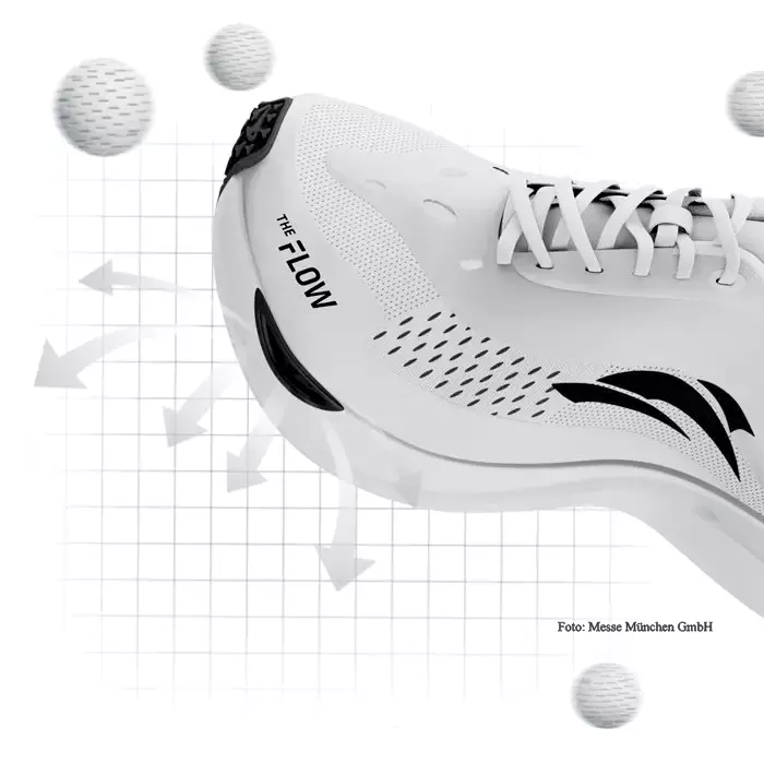 Eine vielversprechende Innovation: Das MaxFlow-Belüftungssystem der neuen Laufmarke The Flow. Mit dem Wind One möchte die asiatische Marke den Laufschuhmarkt revolutionieren. Das MaxFlow-System besteht dabei aus einer Kombination innovativer Materialien. Es beginnt mit einem atmungsaktiven Obermaterial, welches aus einem Stück besteht. Der Upper wird mit einem 3D-Seitenstreifenflügel verstärkt. Ergänzt wird dies durch eine atmungsaktive, antimikrobielle Einlegesohle, die die gesamte Fußunterseite abdeckt. Die Zwischensohle besteht aus einem sogenannten Supercritical Foam mit einer Dichte von 0,12 g/cm³ und wird durch eine ergonomische Kohlefaserplatte ergänzt. Diese soll den Vorantrieb der Läufer und Läuferinnen verstärken. Die Außensohle wird aus einem ultraleichtem, rutschfestem UPU gefertigt, enthält 46 % biobasierten Kohlenstoff und ist somit biologisch abbaubar.