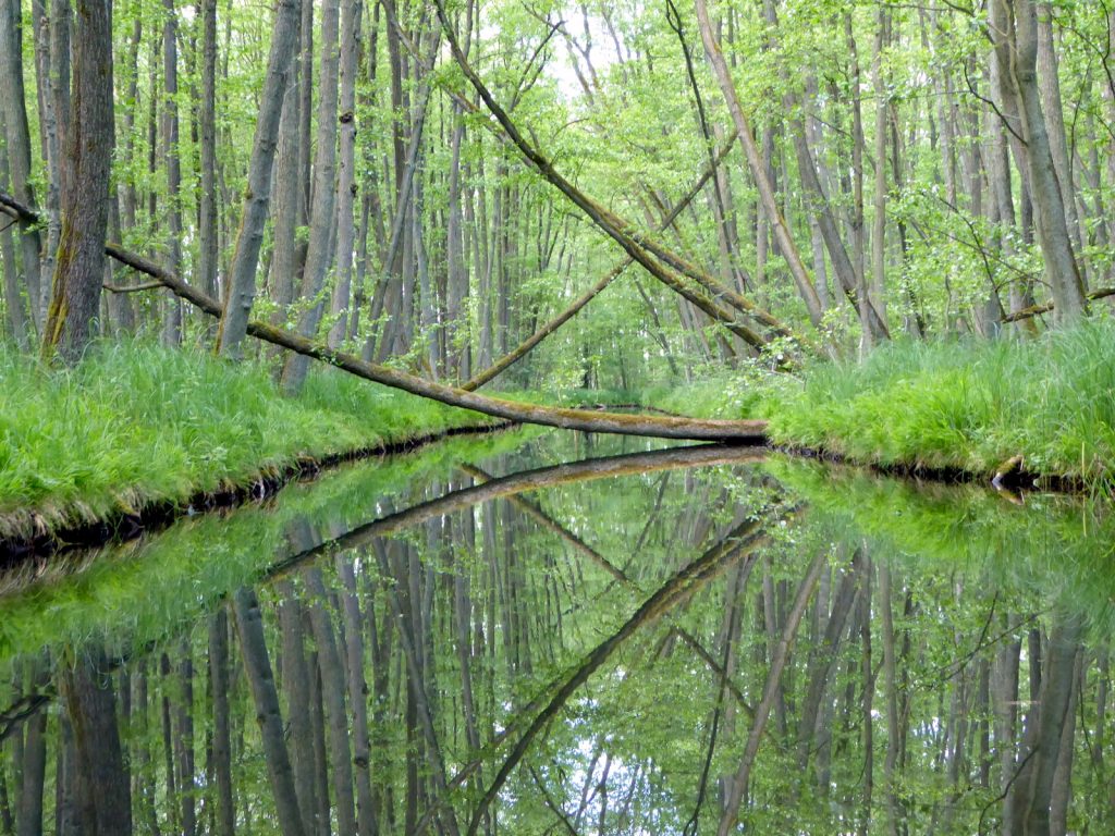 Weiter geht es über den Gobenowsee, den Klenzsee, dann über ein romantisches Fließ und einen kleinen See zum Kanuhof Wustrow. Dort muss man das Boot ein kleines Stückchen tragen- ein Bootswagen wäre nicht schlecht- und geht dann auf der anderen Straßenseite im Plätzsee wieder aufs Wasser. Auf der Nordseite dieses langen Sees muss man etwas suchen, denn die schmale Einfahrt in die Schwanhavel liegt etwas versteckt im Schilf. Auf diesem schmalen Flüsschen fühlt man sich wie im Dschungel. Umgestürzte Bäume, undurchdringliches Ufer, Ringelnattern und Silberreiher – eine offenbar intakte Natur.