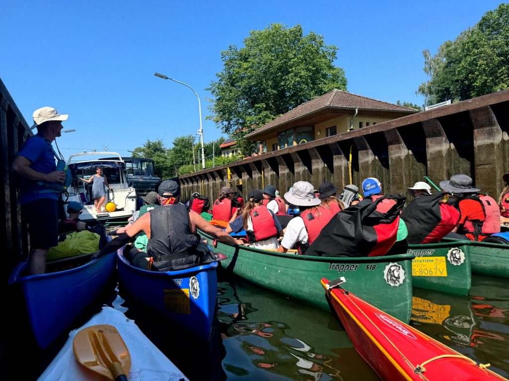 Ganz allein ist man hier in diesem Paddel – Paradies selten; die Wartezeiten an den Schleusen sind schon mal etwas länger, die Anzahl der Motor- und Hausboote hat auch deutlich zugenommen, und auf einige der Passagen muss man die offiziellen „Wasserstraßen“ mit den Motorbooten teilen. Viele Seen sind aber auch für Motorboote gesperrt.