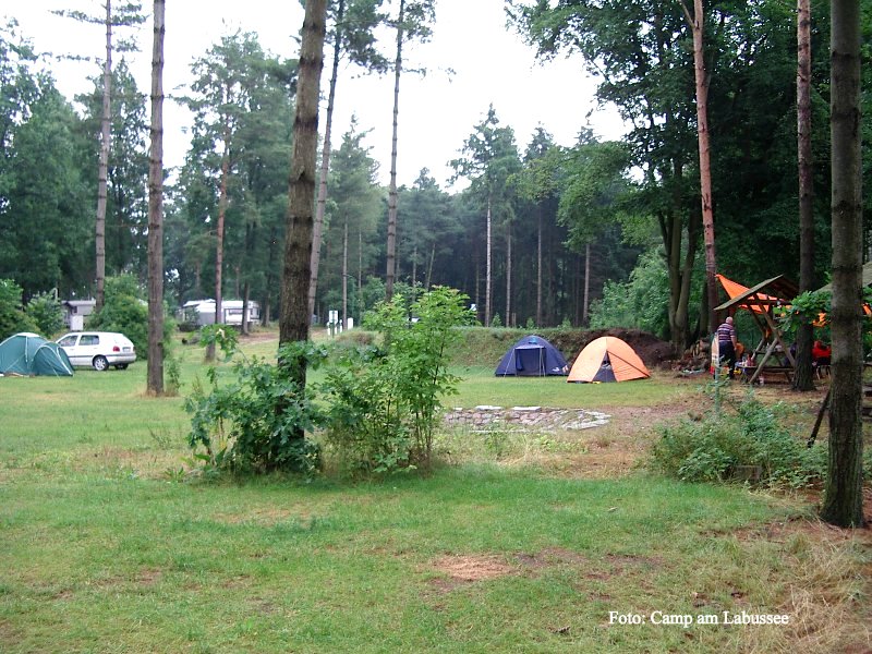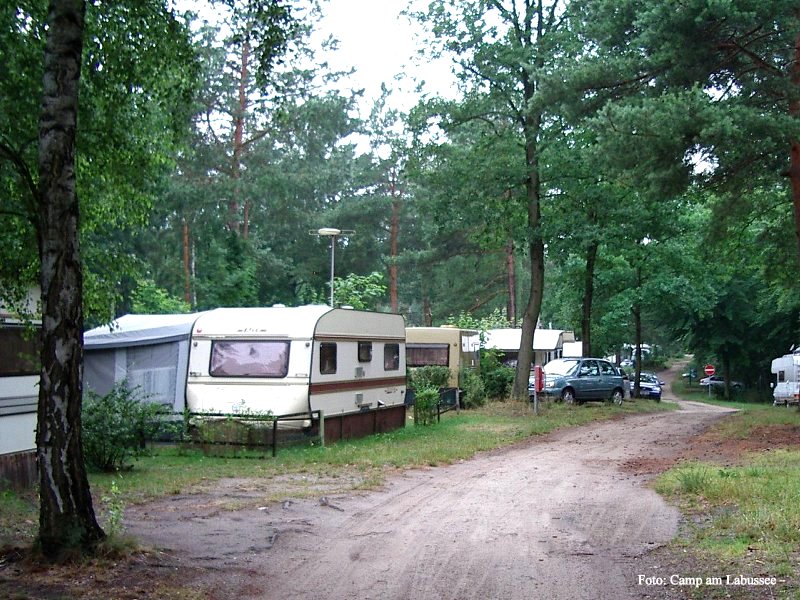 Vom Bett ins Boot geht hier wunderbar. Einfach das Zelt, den Van oder wie wir den Caravan möglichst dicht am Wasser parken, dann ins Boot und lospaddeln. Wir haben uns auf dem Campingplatz am Labussee häuslich eingerichtet und sind dann mit „leichtem Gepäck“ drei Tage lang gepaddelt. Mit dem Boot VARIO 450 kein Problem, man kann ordentlich Gepäck zuladen und verstauen, denn unter der Verkleidung an Bug und Heck ist ausreichend Platz.
