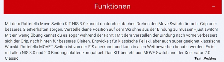 Rottefella Move Switch Bindung – Den Ski – wie eigentliche jeden Skin Ski – lohnt sich immer, mit einer sog. Switch- oder Move-Bindung zu laufen; eine Bindung, die man in ihrer Positionierung auf dem Ski nach vorn und hinten verschieben kann; wie z. B. die Rottefella Move Switch Bindung