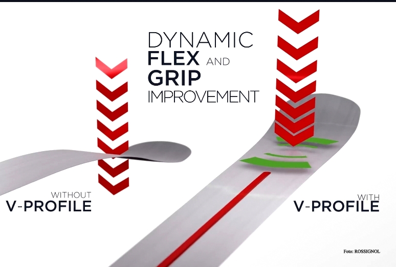 Titanal Beam – eine vom Ende bis zum Schaufelansatz durchgehende Titanalschicht (Full Titanal Layer) mit eingestanzter v-förmigen Rille – V-Profil.