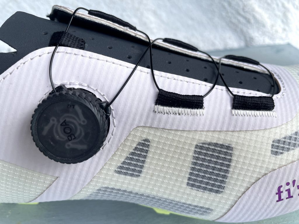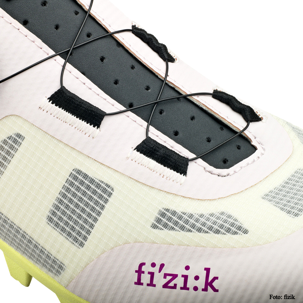 Die Passform wird über ein minimalistisches BOA-System mit Li2-Plattform geregelt, das mit textilen „Schnürsenkelführungen“ arbeitet und dadurch eine gleichmäßige Druckverteilung gewährleistet. Druckstellen werden vermieden, es lässt sich millimetergenau anpassen- auch während der Fahrt.