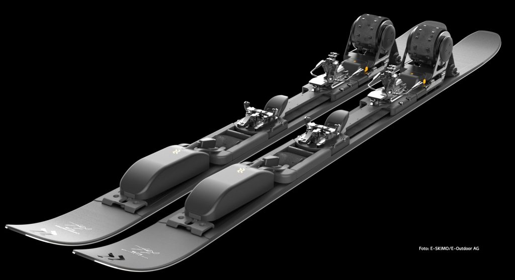 • Komplett ausgestattetes E-Skimo Skitourensystem – Antriebseinheit, Bindung, Elektronik)
