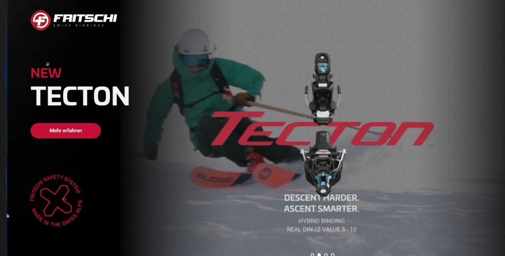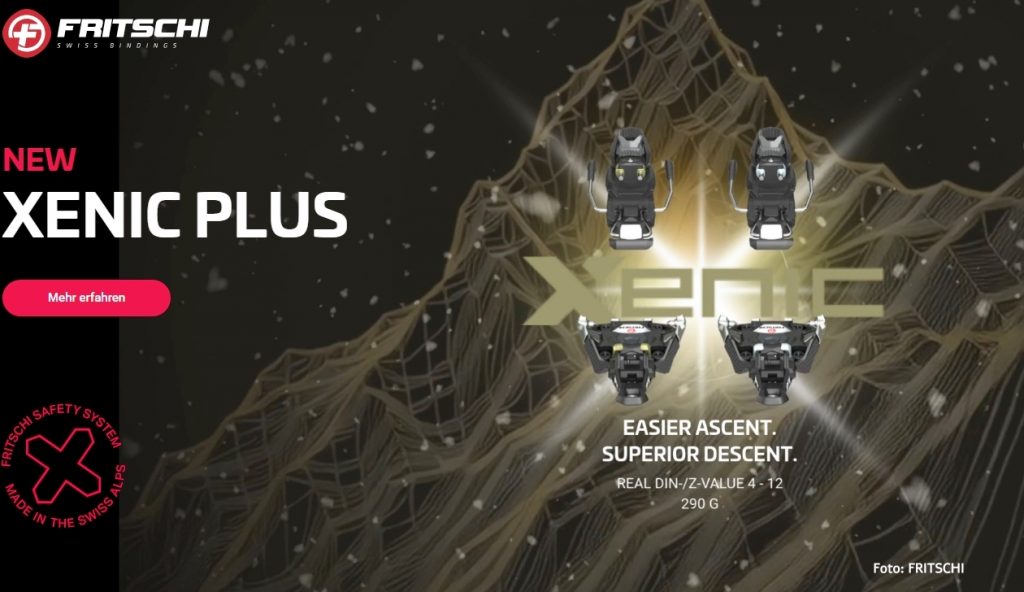 Fritschi: Vorbild Alpinbindung – das Beste für den Aufstieg und die Abfahrt, „seit 65 Jahren steht Fritschi Swiss Bindings für technologische Innovationen im Skitourenbindungsmarkt.