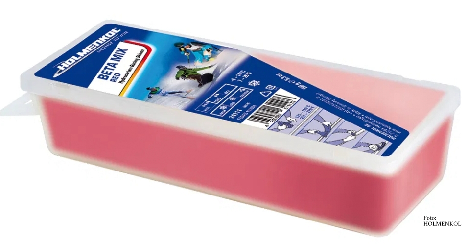 Bei den Grund- / Basis- und Trainingswachsen von HOLMENKOL ist seit „mehr als 30 Jahren das HOLMENKOL Beta Mix Red das Erfolgsmodell, mit dem Langläufer*innen voll auf ihre Kosten kommen.“ Ein Blockwachs. „Dieses Hydrocarbon-Wachs überzeugt mit einer bewährten, geheimen Rezeptur und ist die ideale Wahl für alle, die ein hochwertiges Basis-, Grund- und Trainingswachs für jede Schneeart suchen. Seine besondere Stärke liegt in der extremen Abriebfestigkeit und dem vielseitigen Einsatzbereich. Zudem ist das Wachs einfach in der Anwendung und entfaltet seine optimale Performance bei Schneetemperaturen zwischen minus 4 und minus 14 Grad. Das Beta Mix Red von HOLMENKOL ist ein echter Allrounder, mit dem jeder Tag im Schnee ein Erlebnis wird. , das eingebügelt wird.„