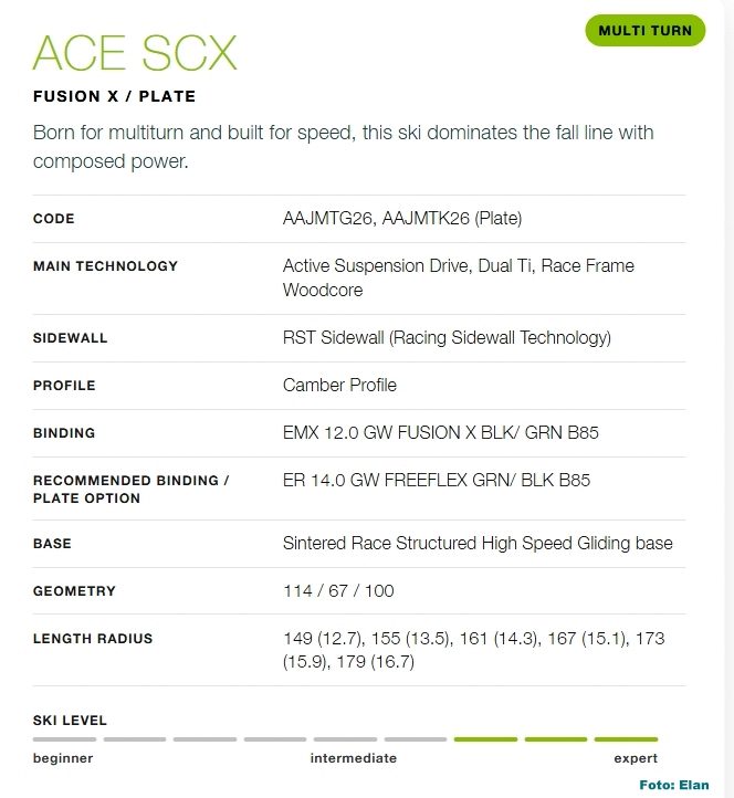 Elan Ace 26/27 – The Revolution in Carving Performance; Elan hat den hochsportlichen Ace Ski komplett überarbeitet und präsentiert jetzt ein sehr gut sortiertes Sortiment, ausgestattet mit der Elan-eigenen Ace-Arrow Technik: