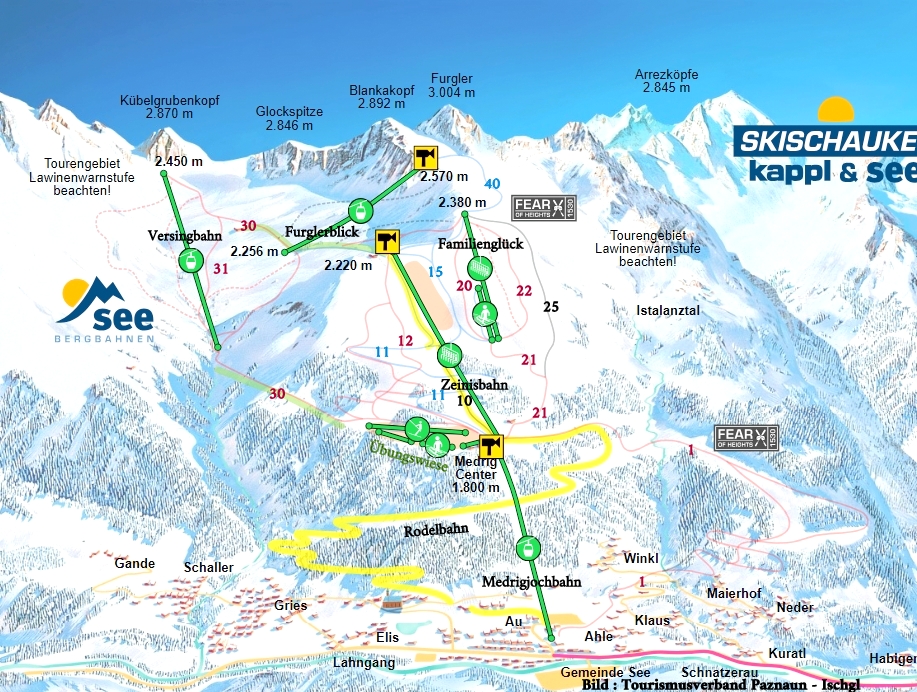 Die beiden Skiorte Kappl und See machen Werbung mit einer gemeinsamen Skischaukel, wobei allerdings die beiden Skigebiete – Skigebiet Kappl unterhalb des Ablittkopfes und Skigebiet See auf der anderen Seite des Paznauntals unterhalb des Kügelgrubenkopfes und des Furglers – nicht per Lift miteinander verbunden sind; die Talstationen beider Gebiete im Paznauntal sind ca. 6 Kilometer von einander entfernt, die Schischaukel-Verbindung findet per Linien- oder Skibus statt.