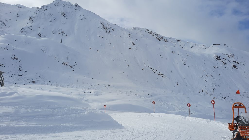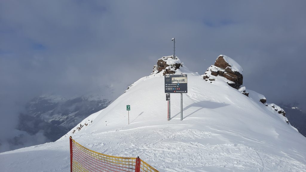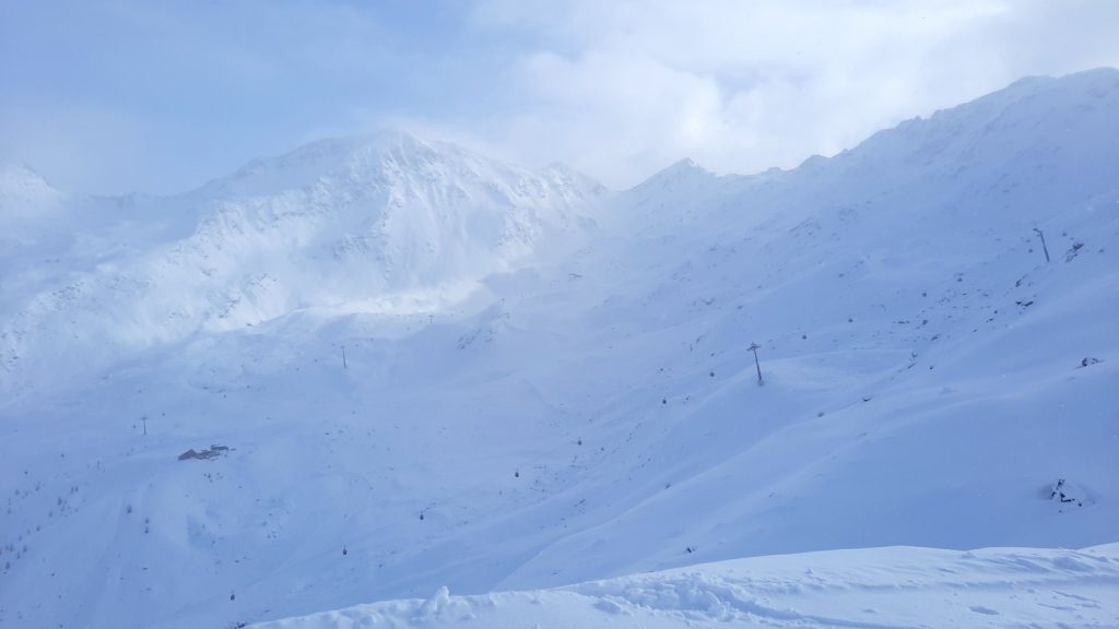 Mit Start am Ausstieg der Ablittkopf-Sesselban in 2640m Höhe können hier durchgehende Abfahrten mit nicht ganz 1500 Höhenmetern gefahren werden – das ist schon ein beeindruckender Höhenunterschied und zumindest auf den oberen 100 Höhenmetern ein absoluter Genuss – weite Hänge/viel Platz, übersichtliches Gelände, „klassisch rotes“ Gefälle.