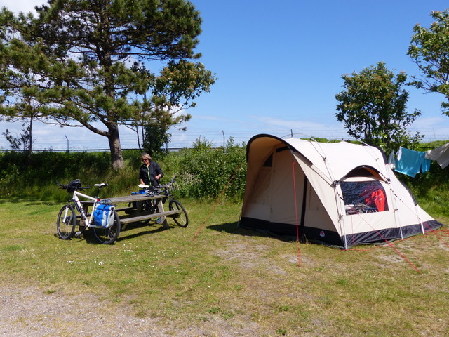 Unser erstes Quartier war der Campingplatz Ostseecamp Glücksburg – Holnis, kurz über (nördlich von) Glücksburg, direkt an der Ostsee; ein großer Platz mit vielen Dauercampern und einer seperaten Zeltwiese. Von hier kann man per Rad die Halbinsel Holnis, die Flensburger Förde und dann auch die Ostseeküste Richtung Schleimündung erfahren; eine sehr abwechslungsreiche Region mit schönen Stränden und kleinen Häfen, viel Wald im Hinterland, Glücksburg und Flensburg als schönen Städte und immer wieder flache Hügel, gute Radwege bzw. kleine Straßen; hier macht Radfahren Spaß, ein Hafenkiosk, ein Hofcafé oder auch eine Kaffeerösterei – wie z. B. Frieda Kaffee in Quern, ca 5 km landeinwärts südlich von Nieby – sind dann auch ein angenehmer Anlass für ein Päuschen. Nieby, Quern – noch nie gehört? Wir auch nicht, aber auch Ortsnamen wie Kalleby, Dollerup und Norgaard klingen erst einmal nach den Geschichten über die Kinder von Billerbü. Tatsächlich deuten diese Namen auch darauf hin, dass diese Region vor ca. 1000 Jahren lange unter schwedischer und dänischer Herrschaft stand. Glücksburg mit seinem Schloss, dem Schlosspark und daran angrenzendem Wald und die noch ursprüngliche Halbinsel Honis sind auf jeden Fall auch einen Besuch wert. Und natürlich Flensburg mit seinem Fördehafen; eine interessante Stadt mit lebhafter Einkaufsstraße, schöner Hafenzone und einem großzügigen Museumsberg oberhalb der Einkaufsstraße.