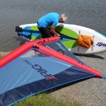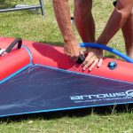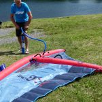 Und da war es natürlich nur eine Frage der Zeit, bis das aufblasbare Surf-Rig „erfunden“ wurde. Ohne große Transportprobleme lassen sich nun Surfboard und Rig im Kofferraum transportieren, mit Muskelkraft oder elektr. Pumpe aufblasen und man kann losschippern.