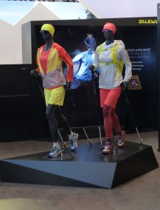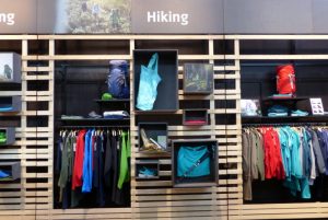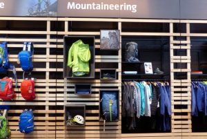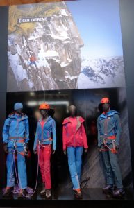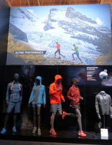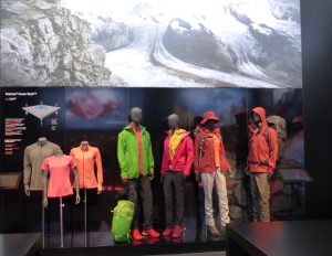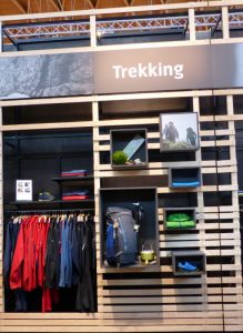 Viele der bekannten Outdoor-Firmen bieten fast komplette Kleidung nach Outdooraktivitäten differenziert an, sie machen diese Differenzierung/Spezialisierung auch auf ihrem Messestand deutlich.